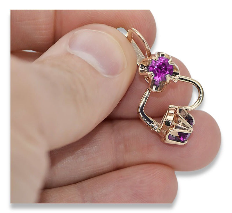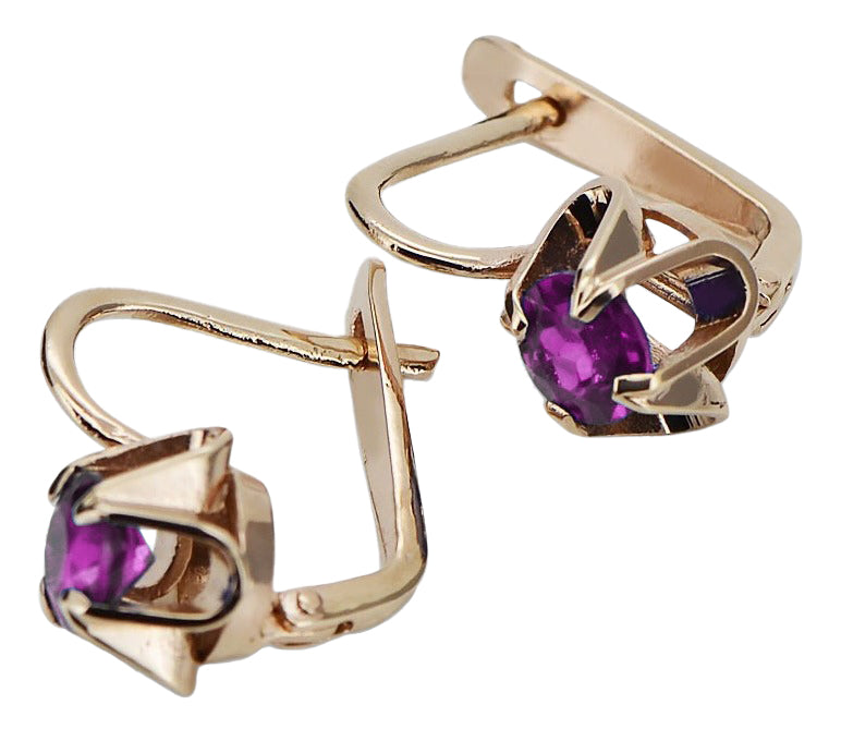 Vintage rose pink 14k 585 gold Amethyst earrings vec018 Russian Soviet style