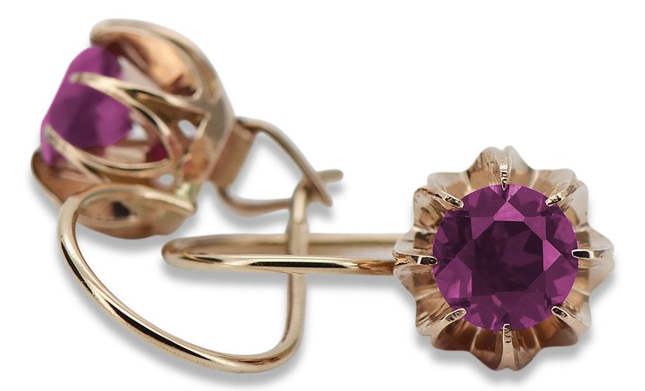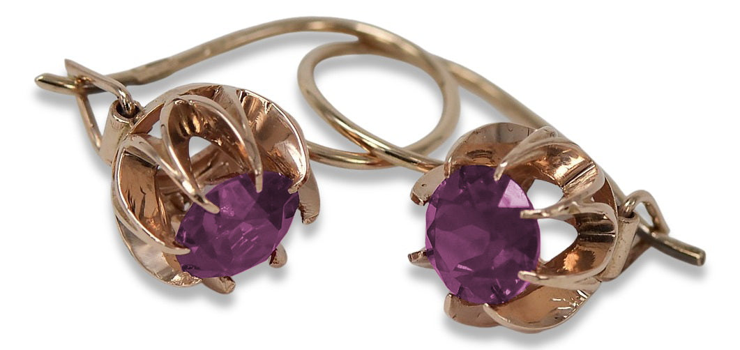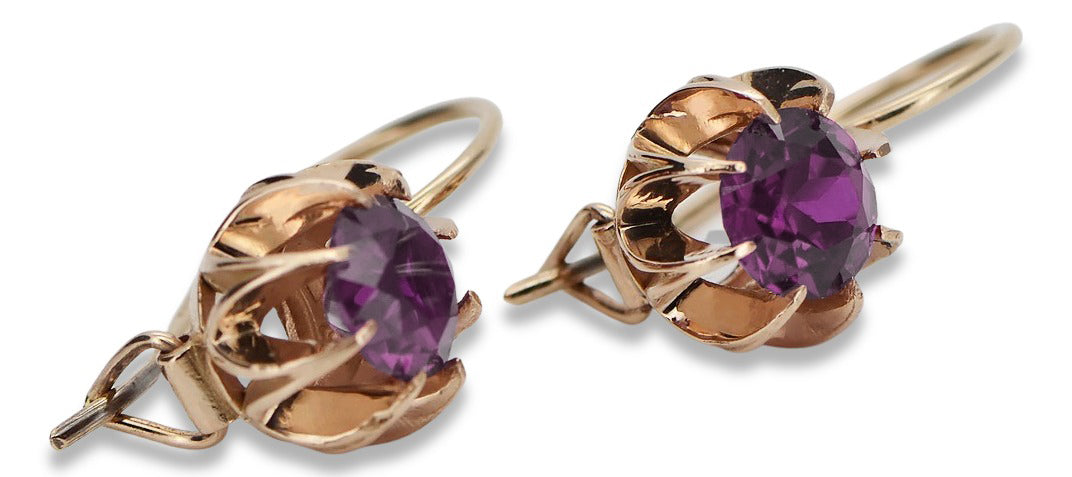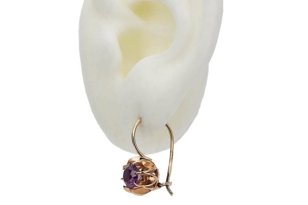 Vintage rose pink 14k 585 gold amethyst earrings vec062