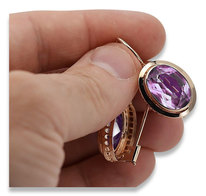 Vintage rose pink 14k 585 gold Amethyst earrings vec114