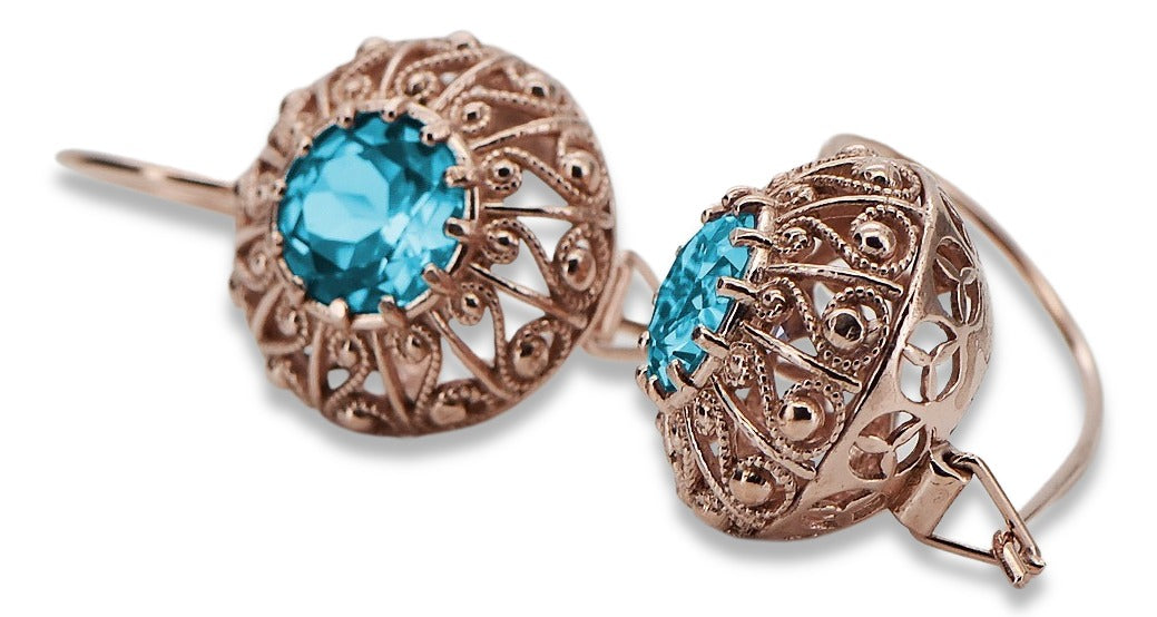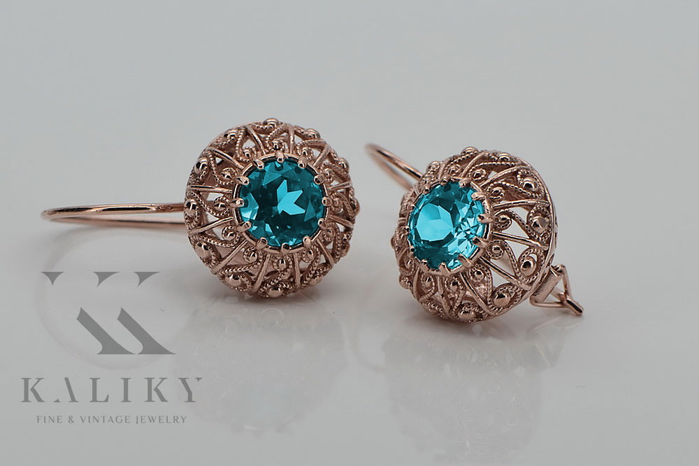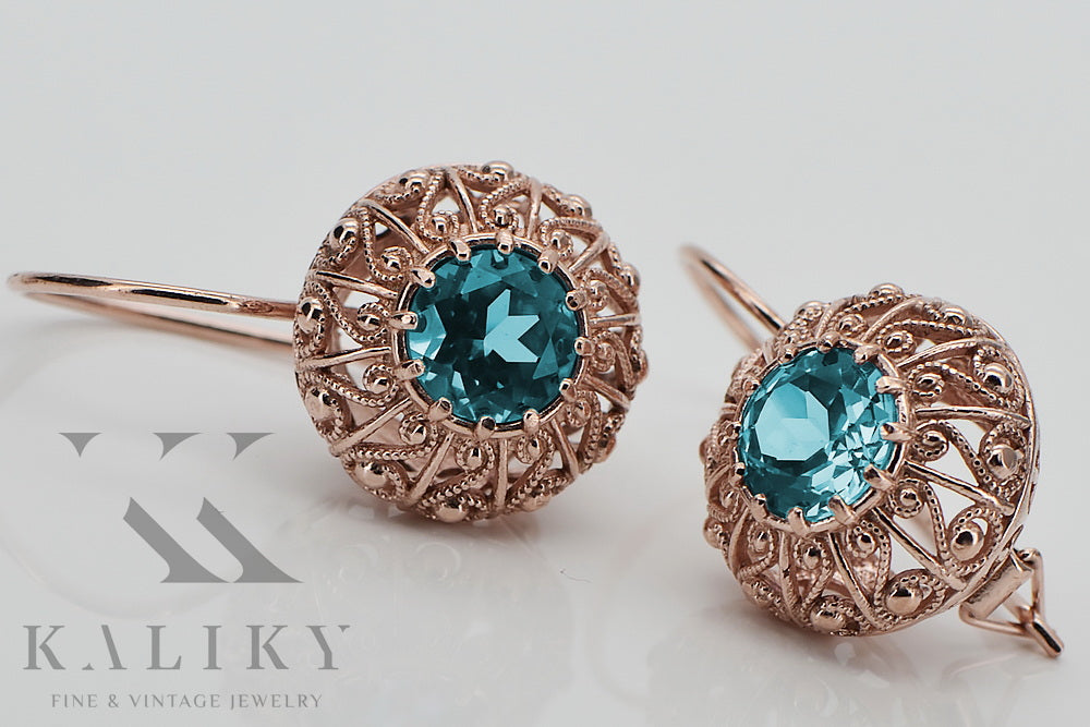 Vintage rose pink 14k 585 gold aquamarine earrings vec002 Russian Soviet style