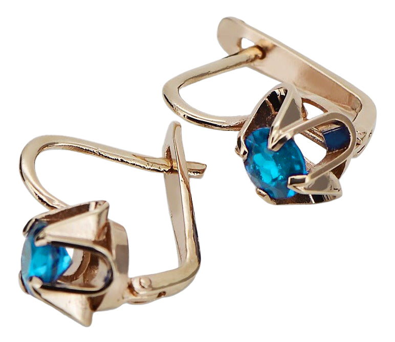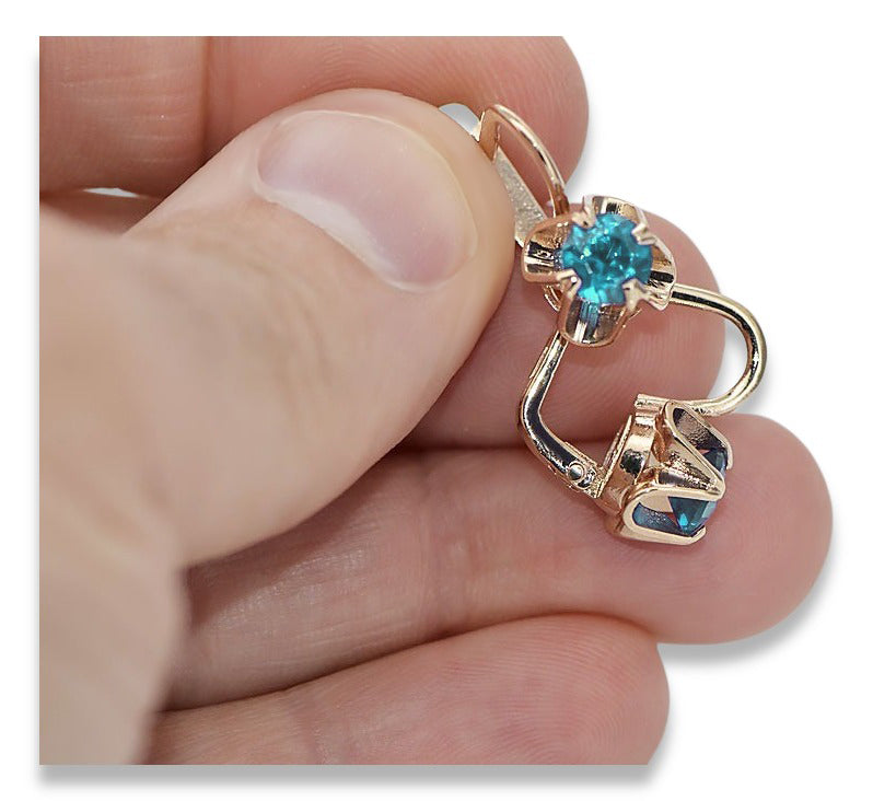 Vintage rose pink 14k 585 gold Aquamarine earrings vec018 Russian Soviet style