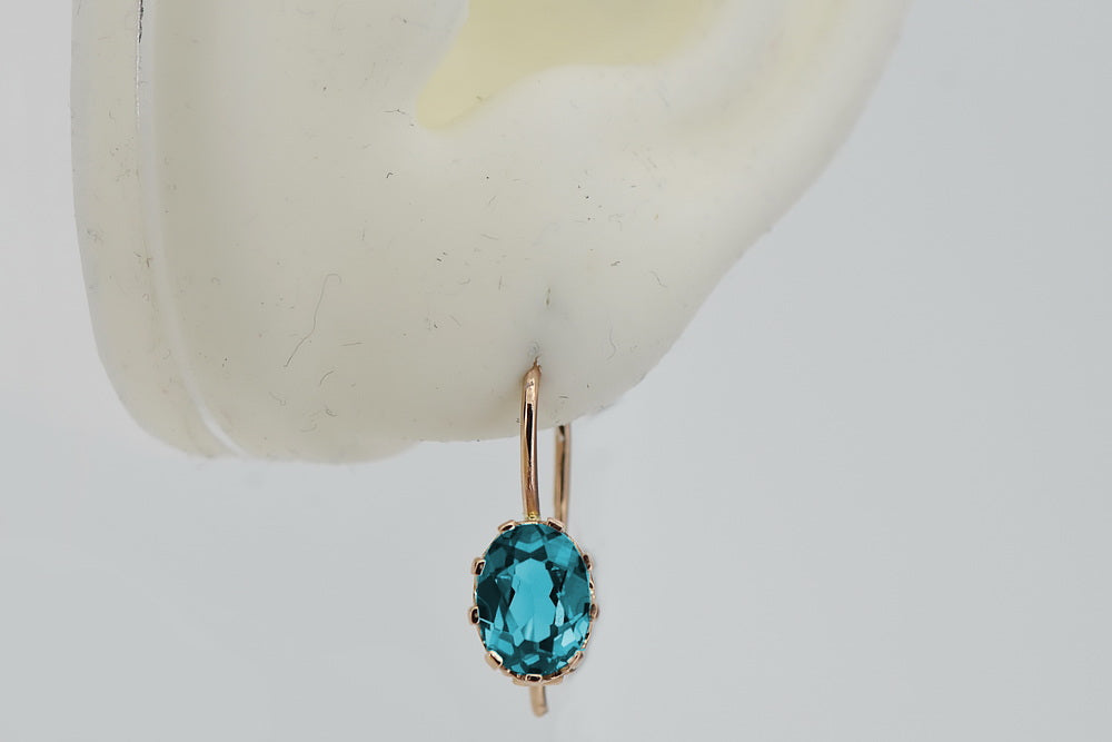 Adorn yourself with a piece of history. These exquisite vintage aquamarine earrings, crafted in the heart of the Soviet era, embody timeless elegance and Russian artistry. A testament to enduring craftsmanship, these 14K rose gold earrings will add a touch of sophistication and unique charm to any ensemble. These earrings are more than just jewelry; they are a precious piece of heritage.