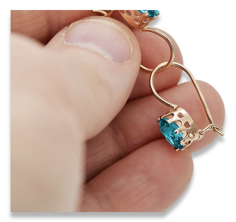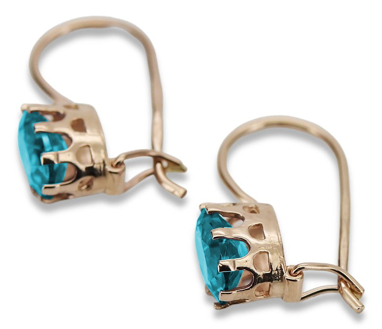 Vintage rose pink 14k 585 gold aquamarine earrings vec196 vec196r-aq