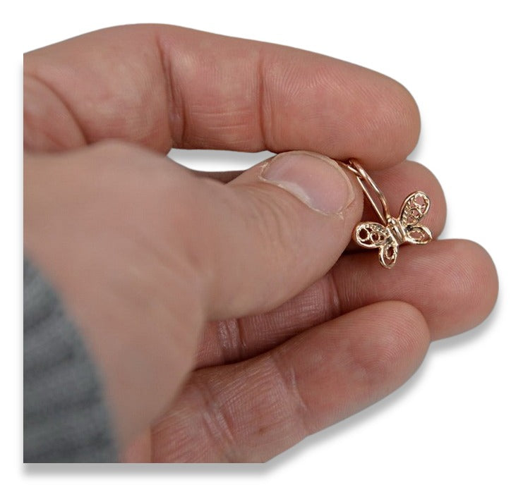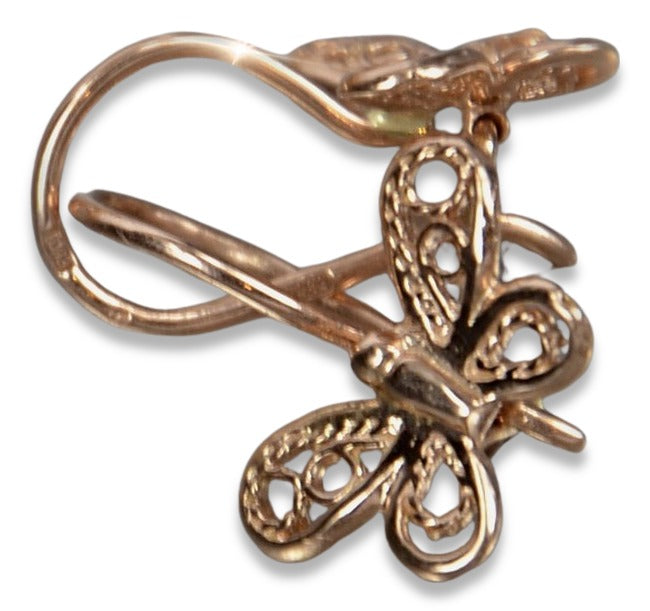 Vintage rose pink 14k 585 gold butterfly earrings ven173