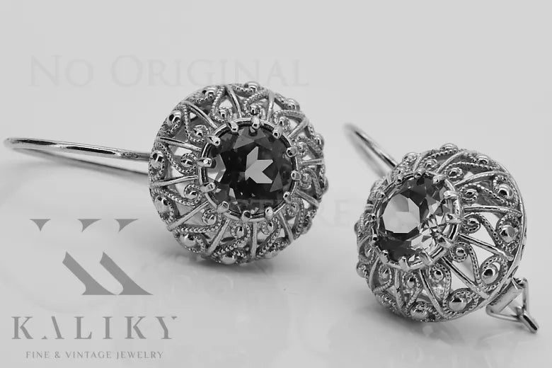 Vintage rose pink 14k 585 gold earrings setting vec002 Russian Soviet style vec002r-st