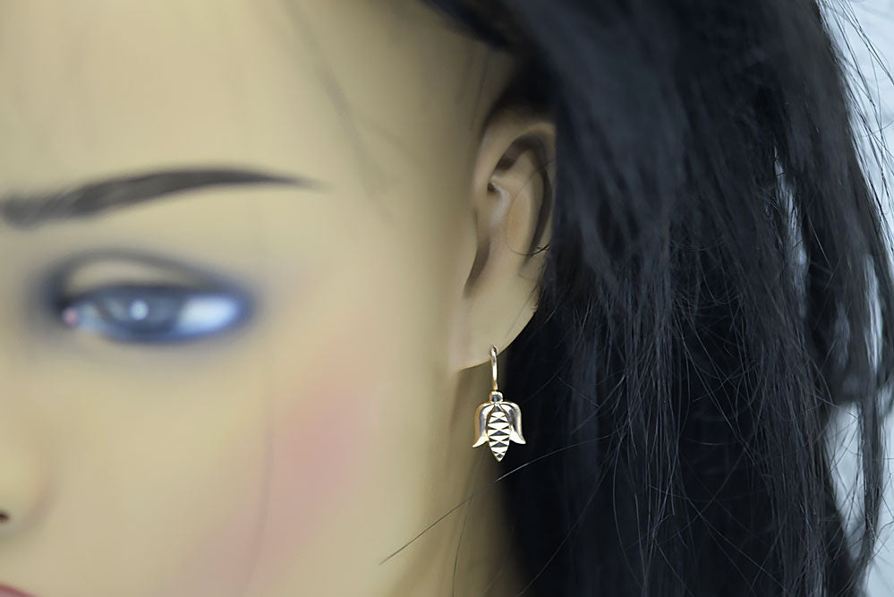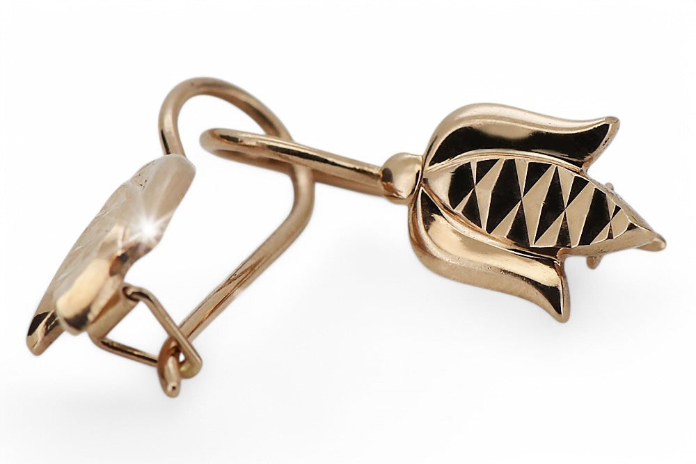Vintage rose pink 14k 585 gold flower earrings ven126