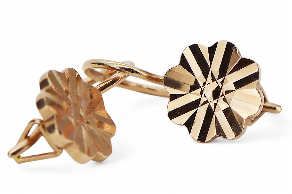 Vintage rose pink 14k 585 gold flower earrings ven163