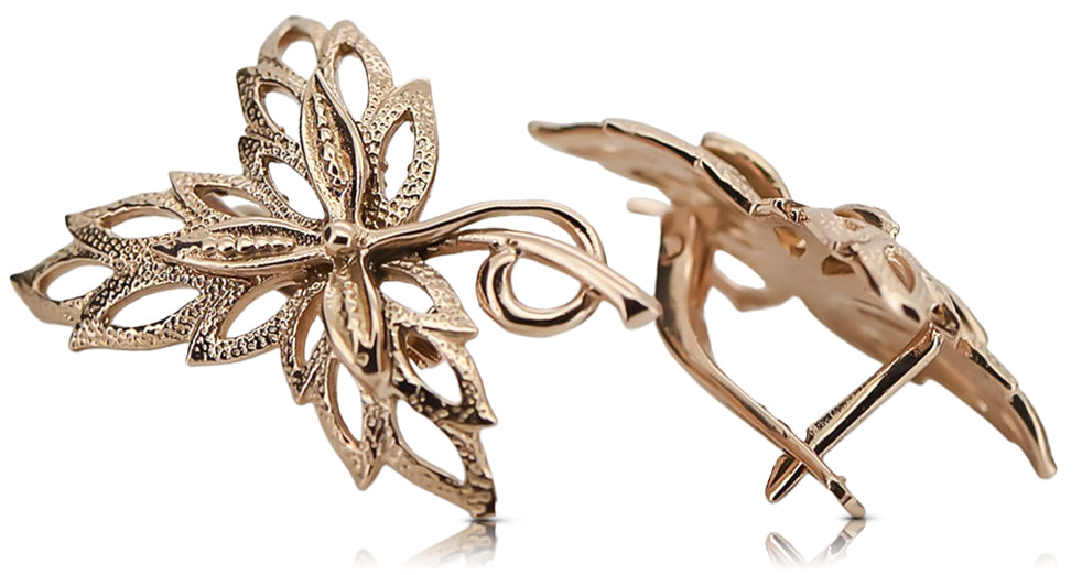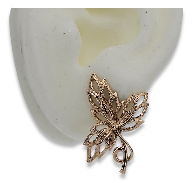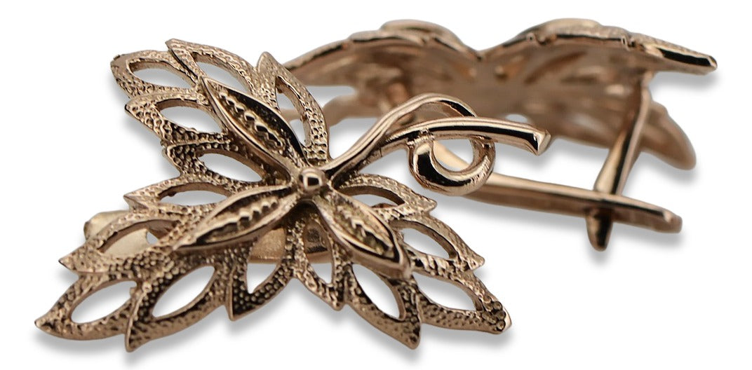 Vintage rose pink 14k 585 gold maple leaf earrings ven096r