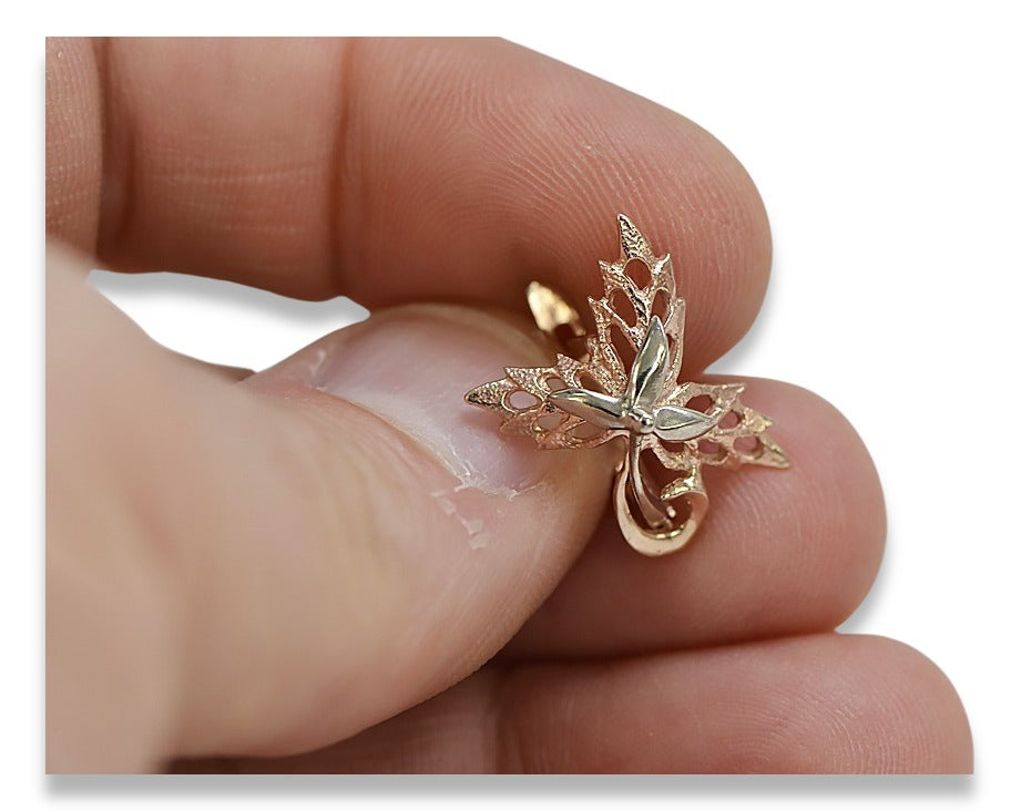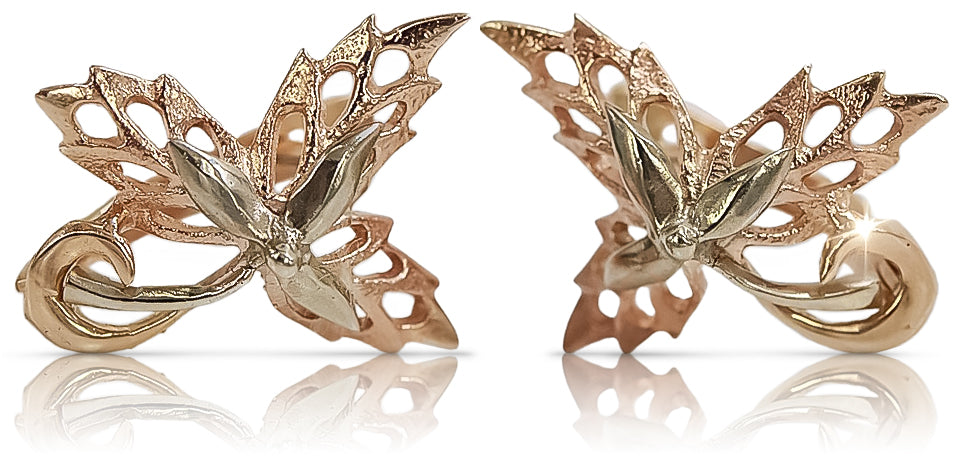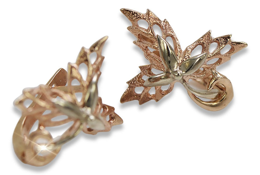 Vintage rose pink 14k 585 gold maple leaf earrings ven177