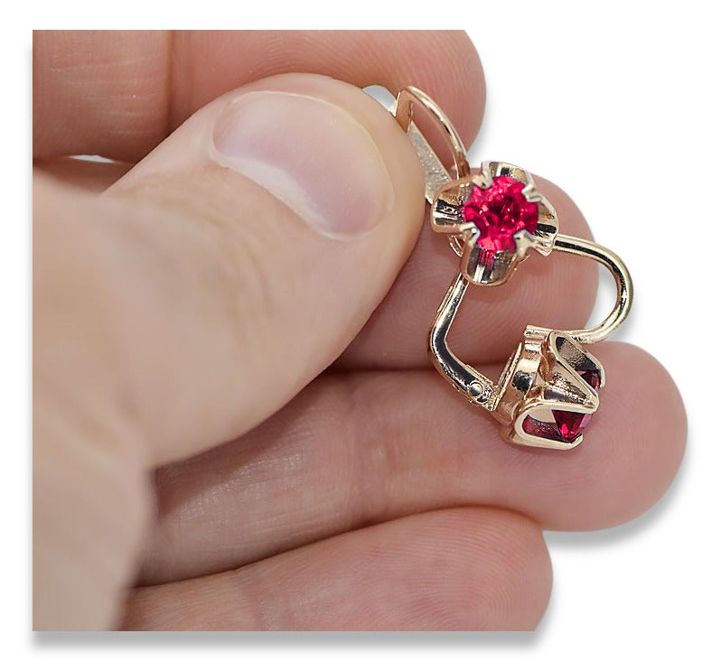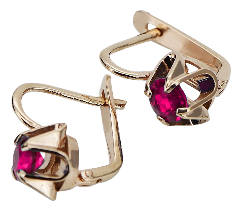 Vintage rose pink 14k 585 gold Ruby earrings vec018 Russian Soviet style