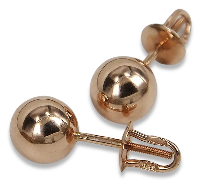 Vintage rose pink 14k 585 gold Vintage ball earrings ven085