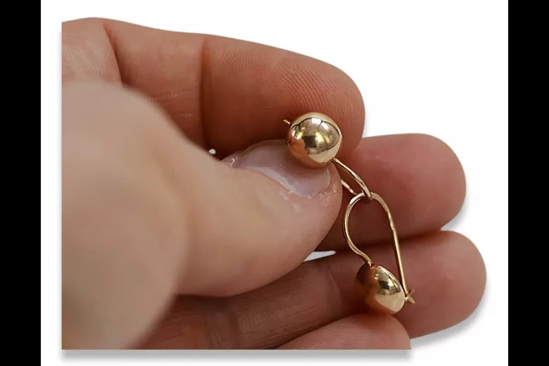Vintage rose pink 14k 585 gold Vintage ball earrings ven130
