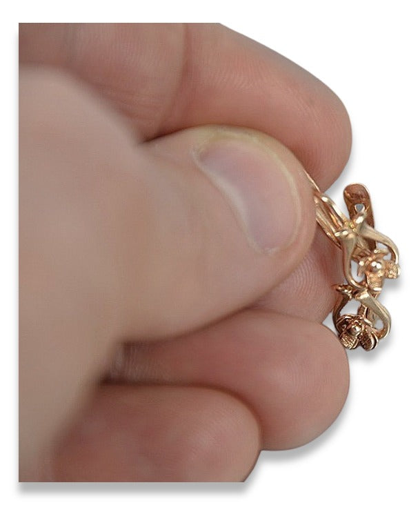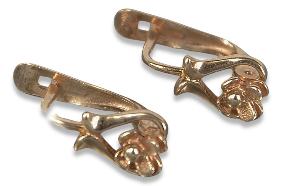 Vintage rose pink 14k 585 gold Vintage flower earrings ven166
