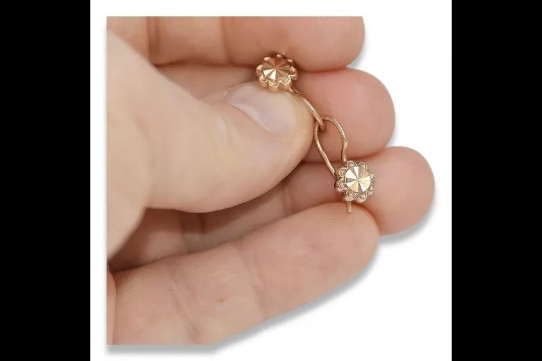 Embrace the allure of a bygone era with these exquisite vintage flower earrings, a testament to the enduring elegance of Russian Soviet jewelry design. Crafted from warm 14K rose gold, these earrings whisper tales of romance and artistry, adding a touch of timeless sophistication to any ensemble. A captivating piece of history, these earrings are more than just jewelry; they are a legacy.