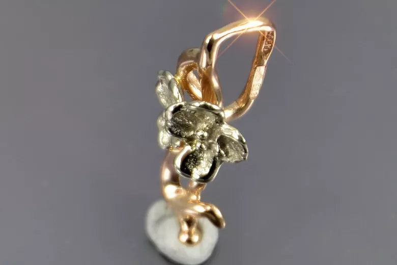 Vintage rose pink 14k 585 gold Vintage flower pendant vpn096