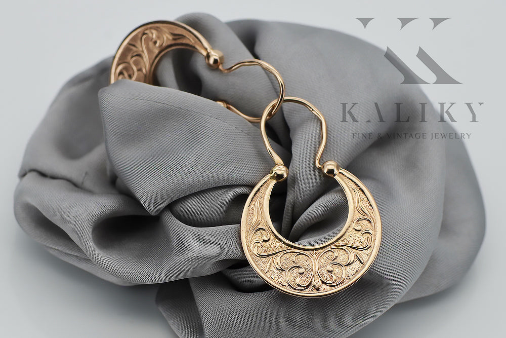 Vintage rose pink 14k 585 gold Vintage Gipsy earrings ven050