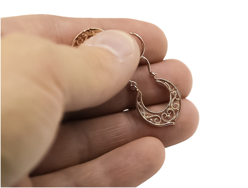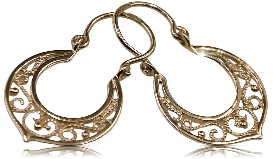Vintage rose pink 14k 585 gold Vintage Gipsy earrings ven075