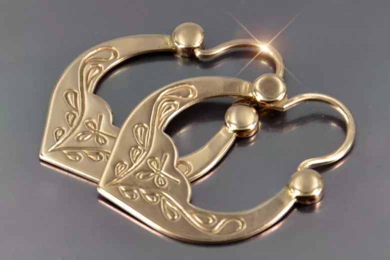 Step into a world of timeless elegance with these exquisite vintage rose pink 14K gold Gipsy earrings. These earrings, a testament to Soviet era craftsmanship, whisper stories of a bygone era, blending history and luxury seamlessly. Own a piece of authentic Russian vintage jewelry that transcends trends, offering a touch of sophistication and history to your personal style.