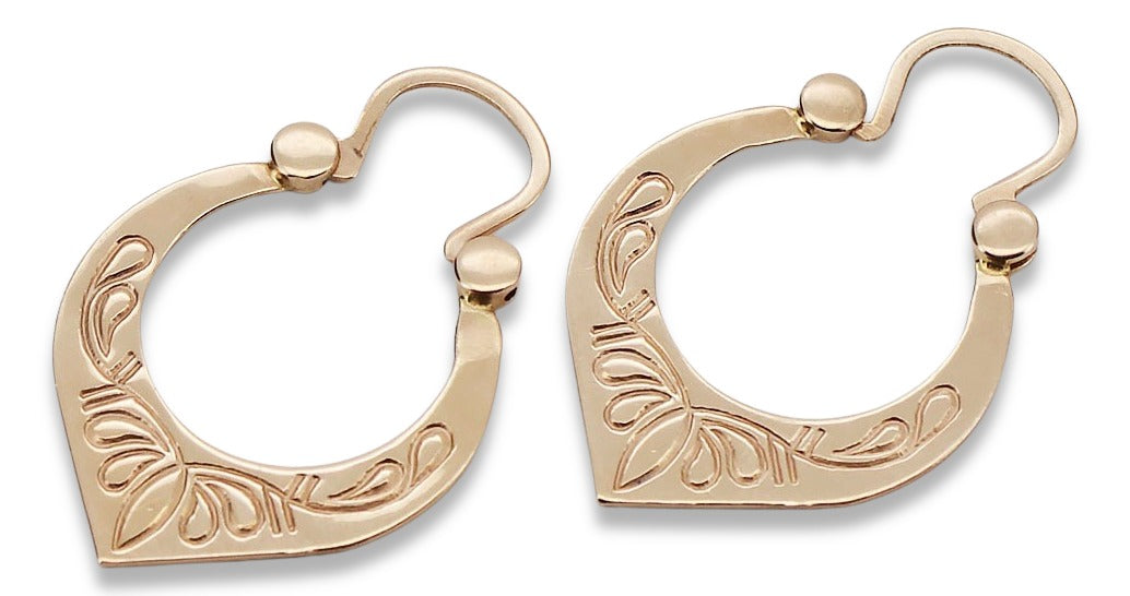 Vintage rose pink 14k 585 gold Vintage Gipsy earrings ven176