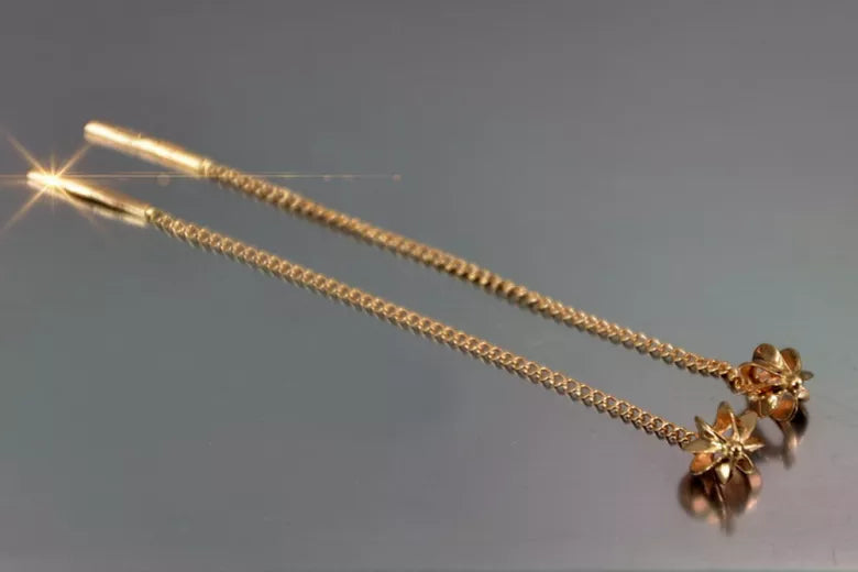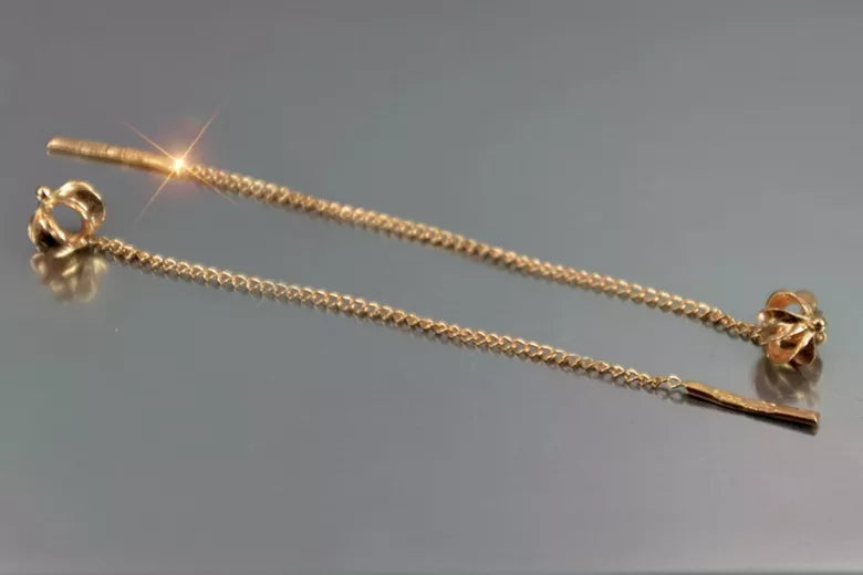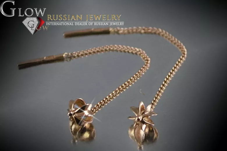 Embrace the allure of a bygone era with these exquisite Vintage Rose Pink 14K Gold Hanging Earrings. A testament to enduring elegance and Soviet craftsmanship, these earrings capture the essence of Russian vintage jewelry, adding a touch of timeless sophistication to any ensemble. These delicate earrings tell a story of history and art, perfect for the discerning collector of luxury gold jewelry.