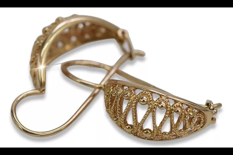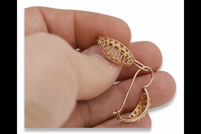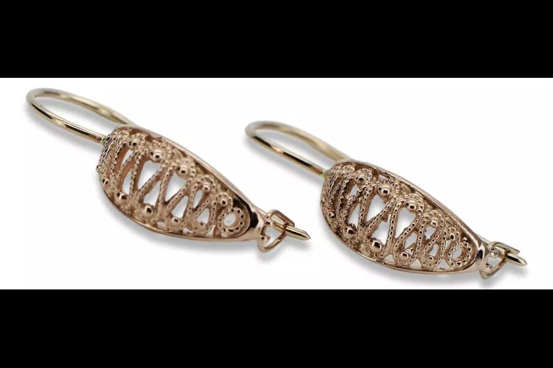 Vintage rose pink 14k 585 gold Vintage Hanging earrings ven154