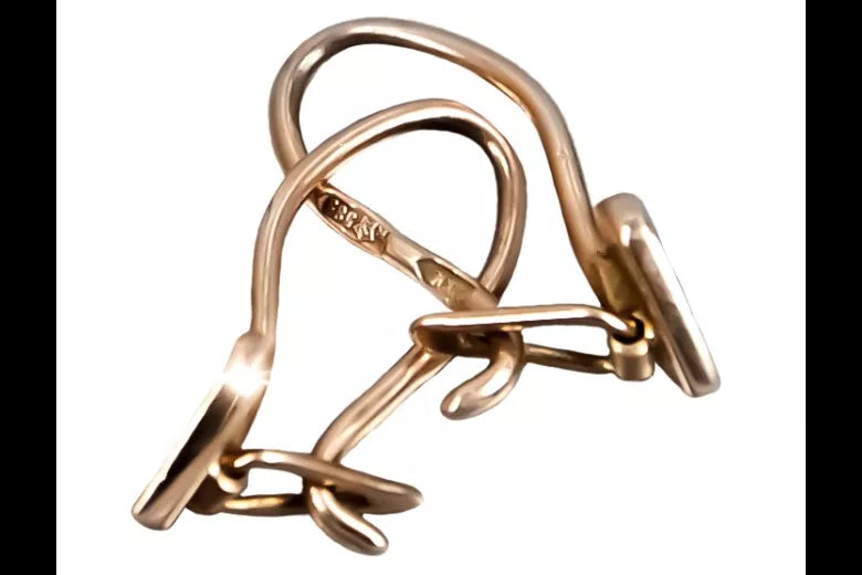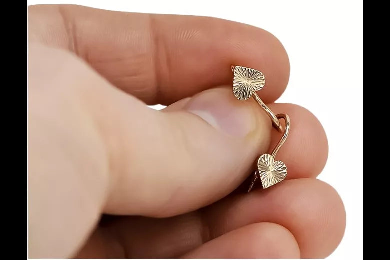Vintage rose pink 14k 585 gold Vintage heart earrings ven001