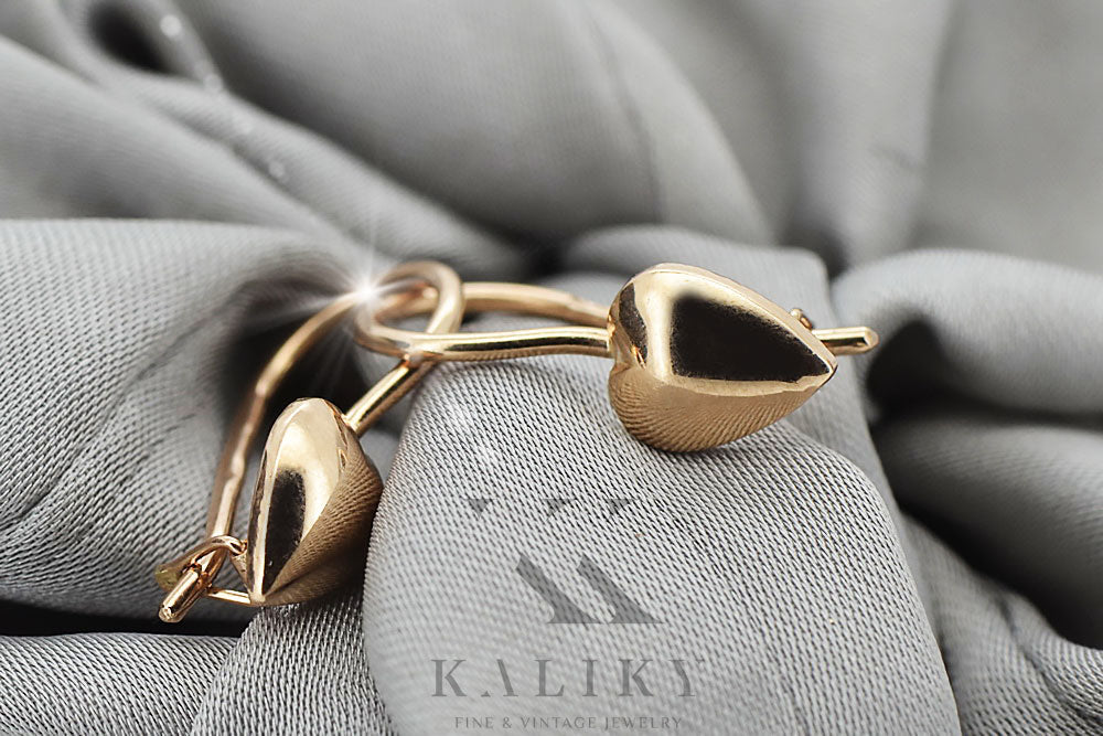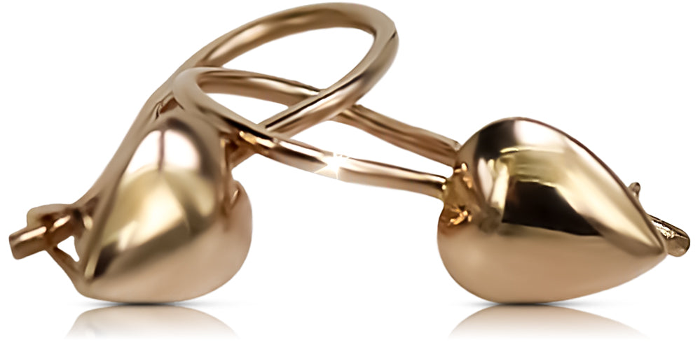 Vintage rose pink 14k 585 gold Vintage heart earrings ven066