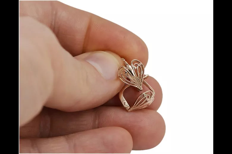 These exquisite vintage heart earrings, crafted in the Soviet era, are a testament to enduring romance and refined artistry. A captivating blend of history and elegance, these 14K rose gold earrings evoke the charm of a bygone era, making them a cherished addition to any jewelry collection. Embrace the allure of Russian vintage jewelry with this timeless piece, a symbol of love and enduring style.
