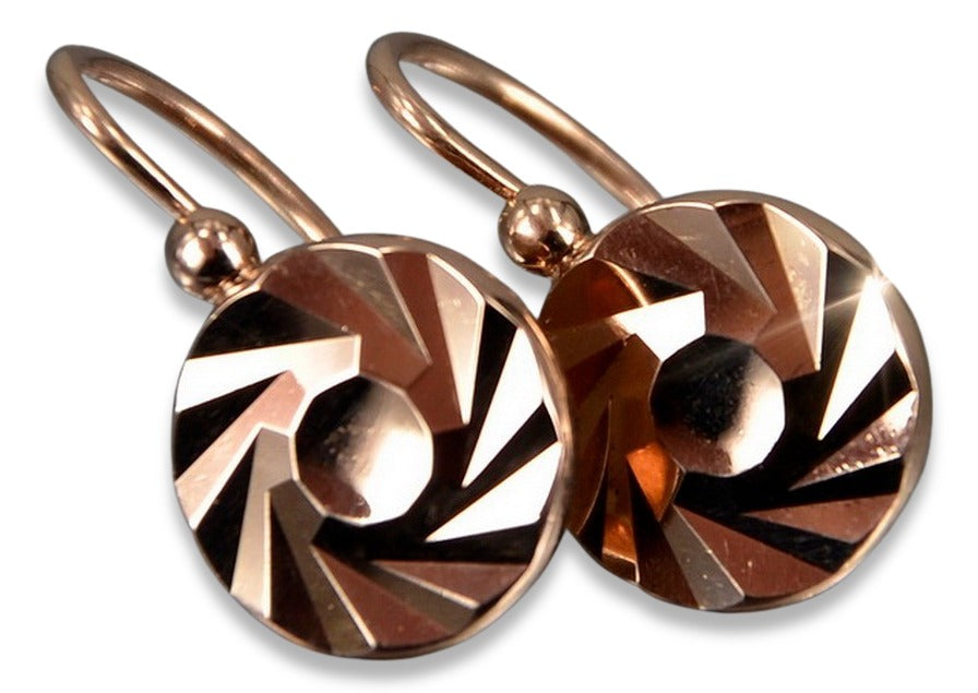 Vintage rose pink 14k 585 gold Vintage hoops earrings ven204