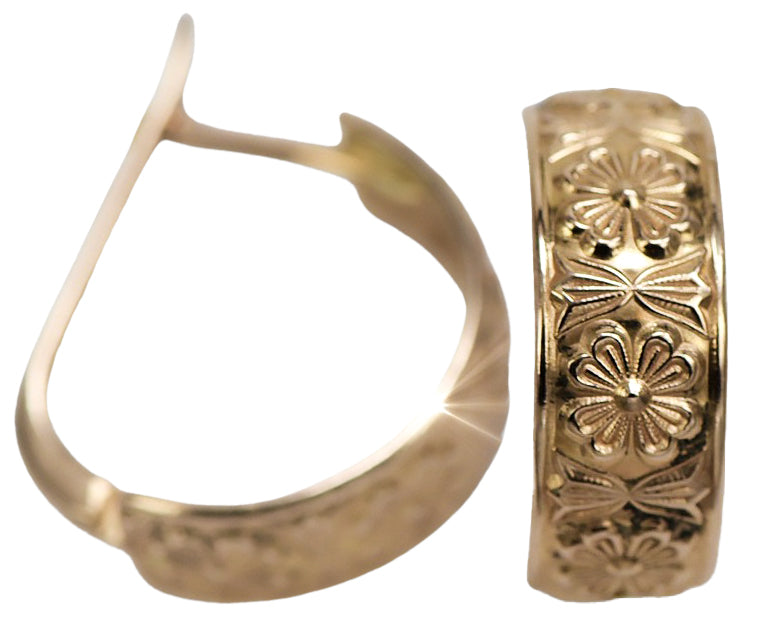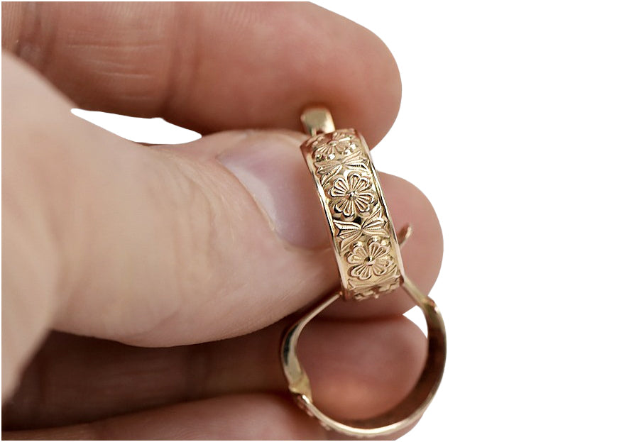 Vintage rose pink 14k 585 gold Vintage Hoops ven073