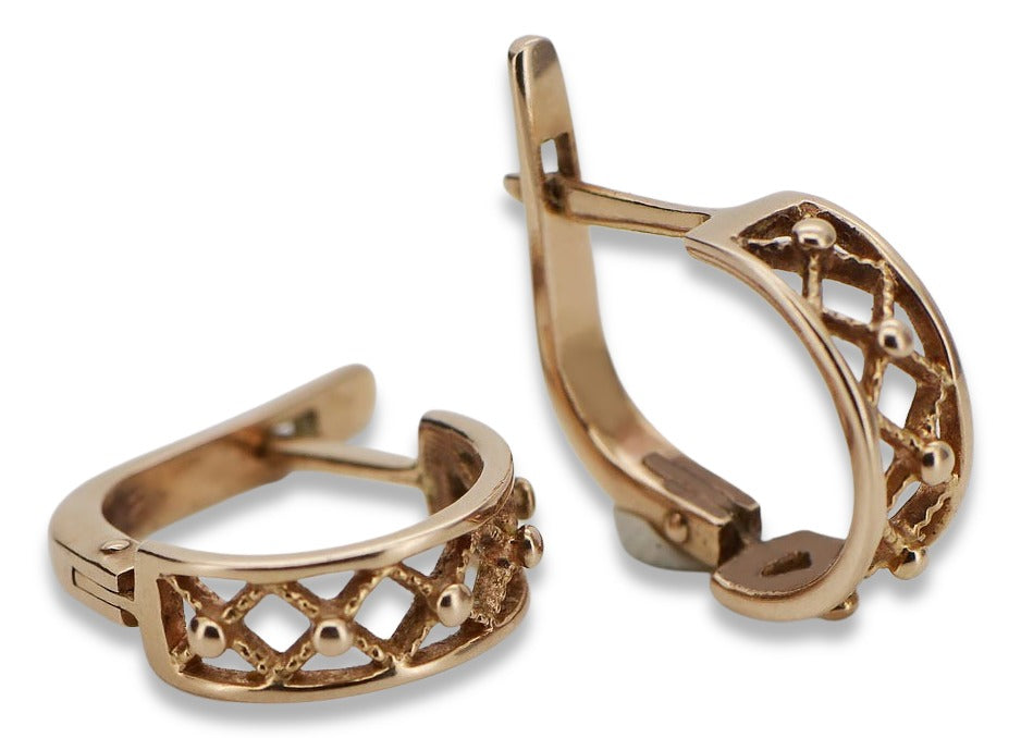 Vintage rose pink 14k 585 gold Vintage Hoops ven145