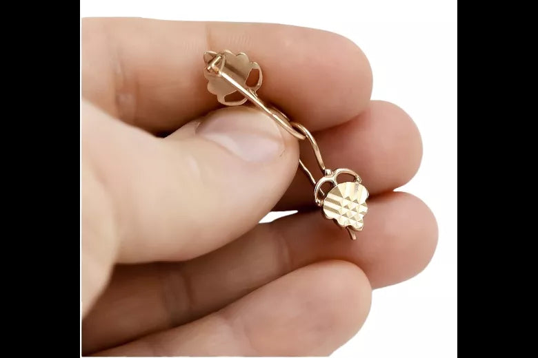 Embrace the allure of a bygone era with these exquisite Vintage Leaf Earrings, a testament to the enduring elegance of Russian Soviet jewelry. Crafted from radiant 14K rose gold, these earrings encapsulate the artistry and sophistication of Soviet-era design. A perfect embodiment of feminine grace, these earrings make a statement of timeless beauty and refined taste.