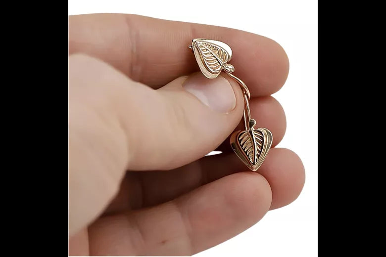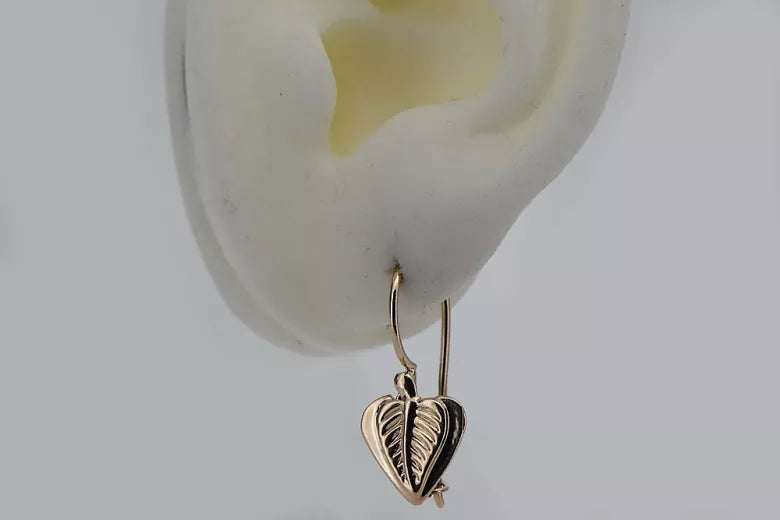 Vintage rose pink 14k 585 gold Vintage leaf earrings ven015