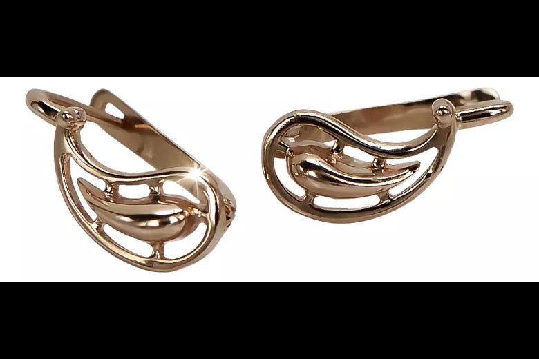 Vintage rose pink 14k 585 gold Vintage leaf earrings ven018