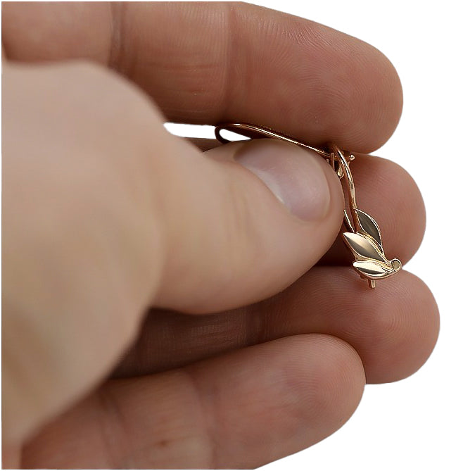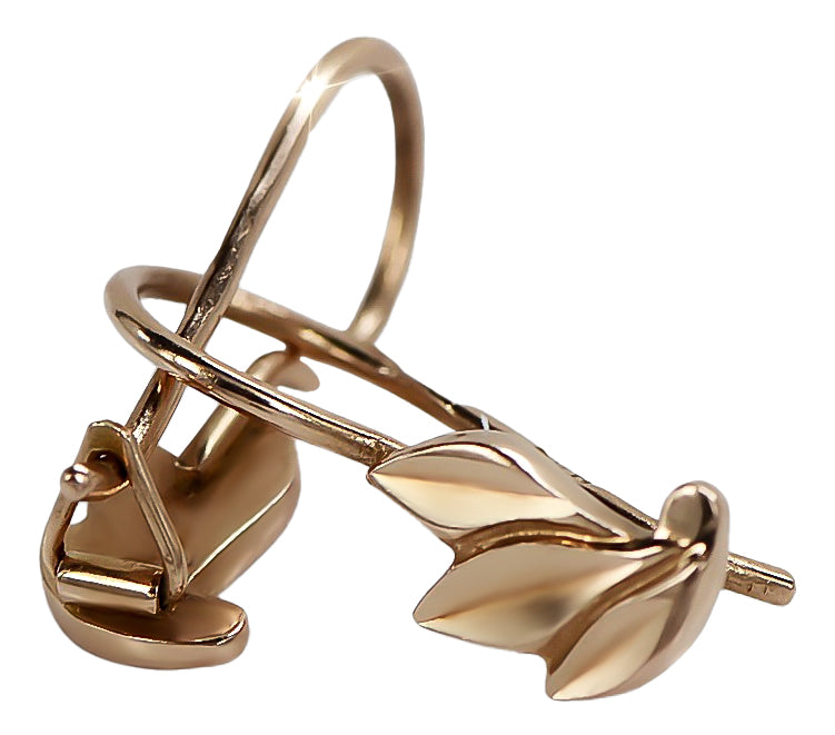 Vintage rose pink 14k 585 gold Vintage leaf earrings ven028