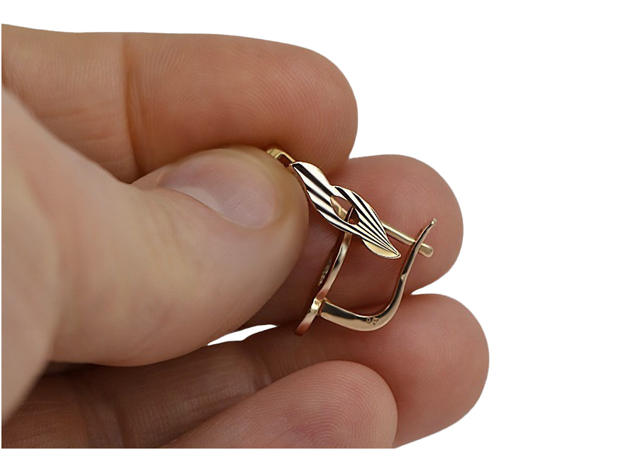 Vintage rose pink 14k 585 gold Vintage leaf earrings ven062