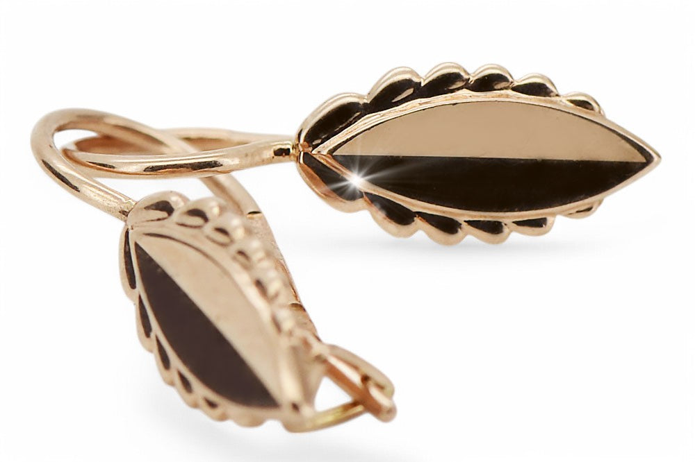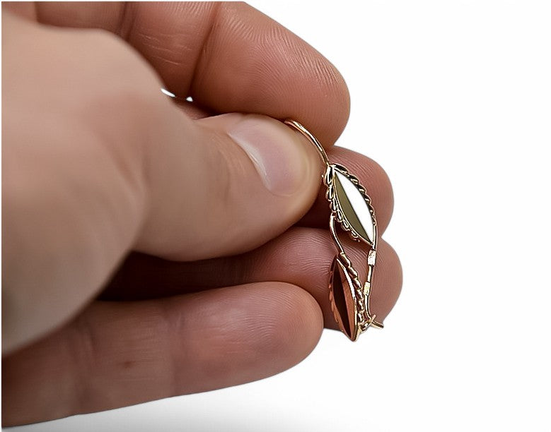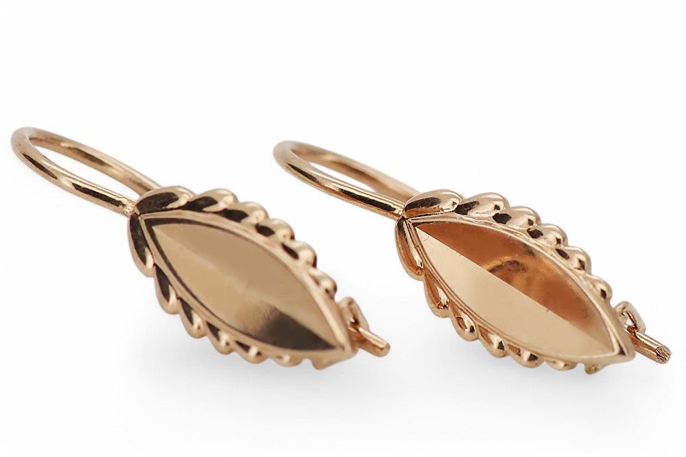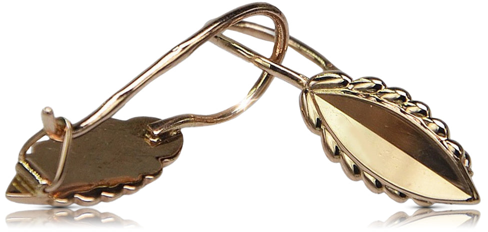 Vintage rose pink 14k 585 gold Vintage leaf earrings ven078