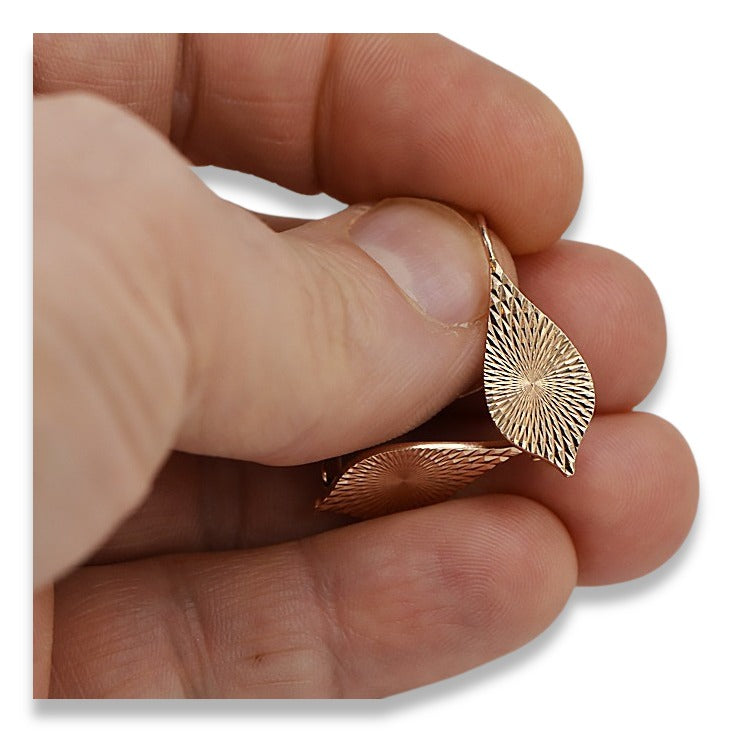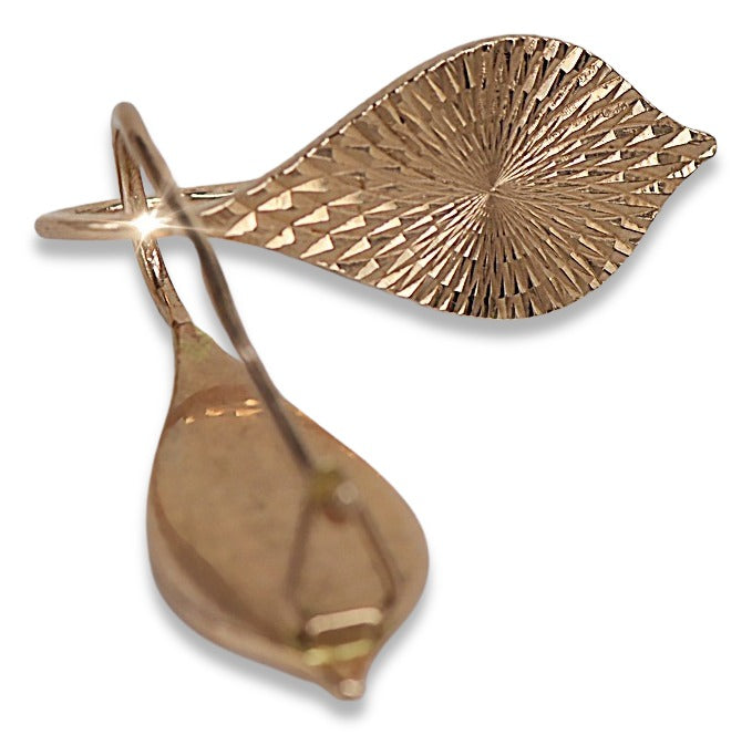 Vintage rose pink 14k 585 gold Vintage leaf earrings ven086