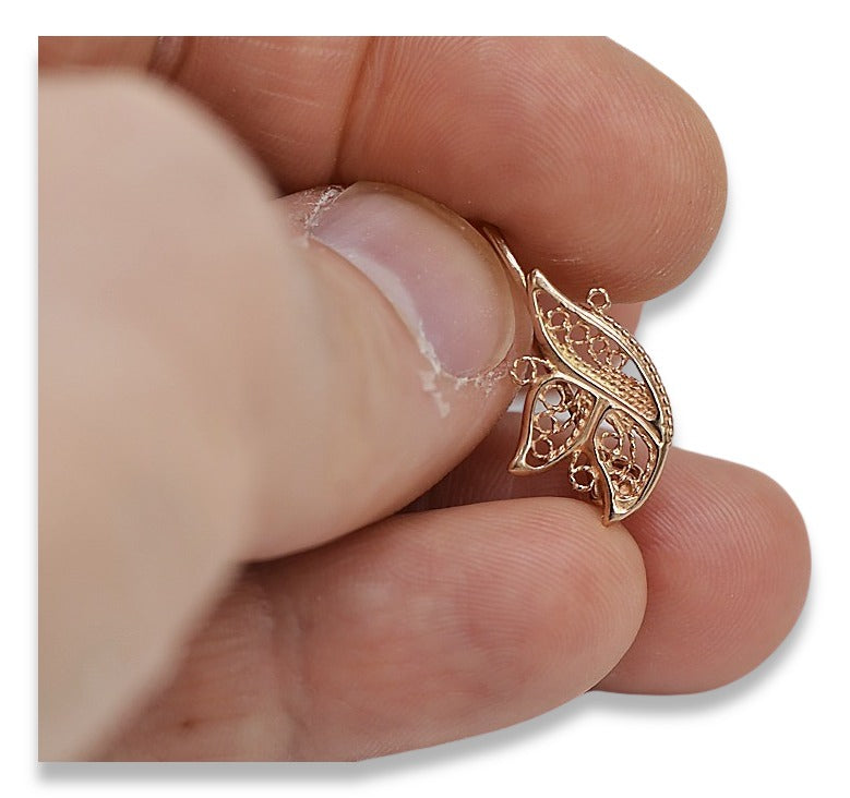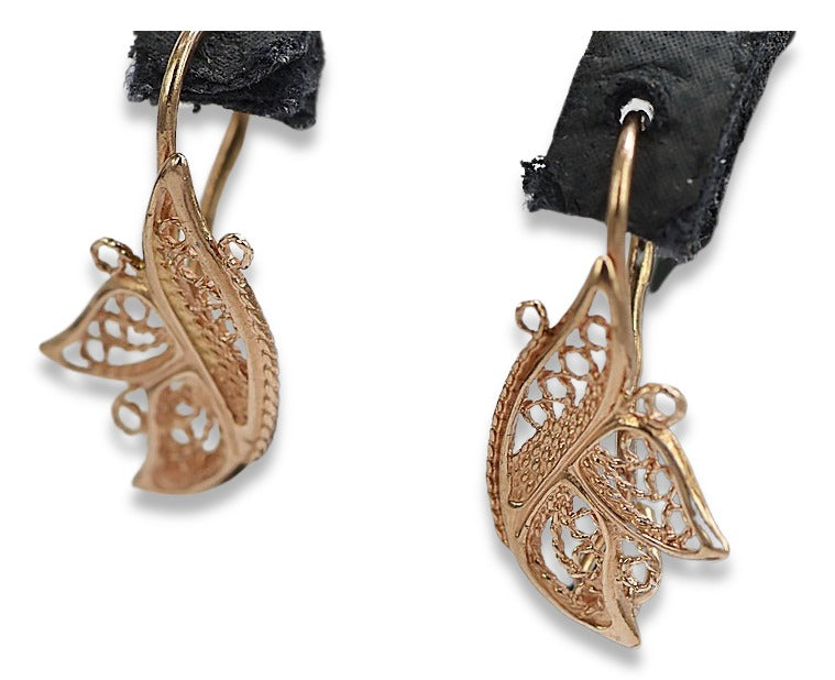 Vintage rose pink 14k 585 gold Vintage leaf earrings ven104