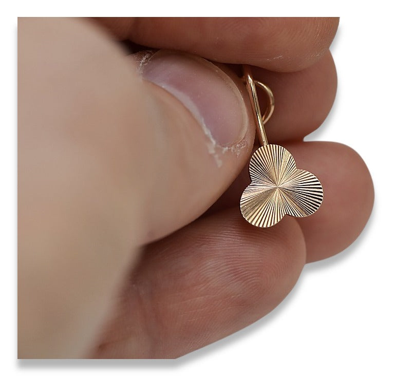 Vintage rose pink 14k 585 gold Vintage leaf earrings ven108