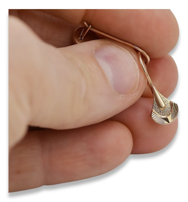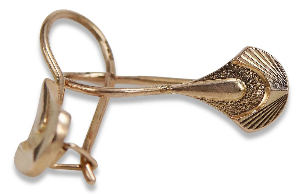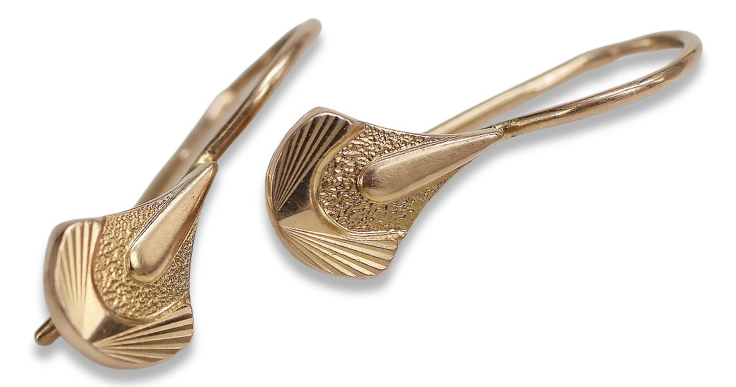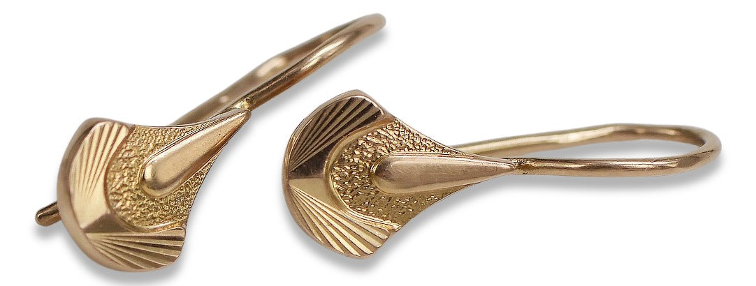 Vintage rose pink 14k 585 gold Vintage leaf earrings ven112