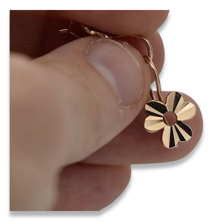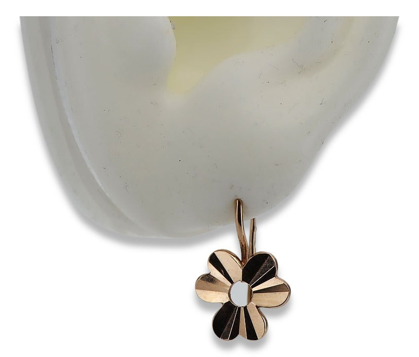 Vintage rose pink 14k 585 gold Vintage leaf earrings ven120