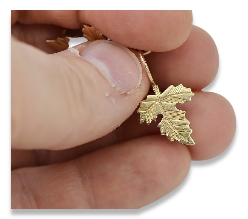 Vintage rose pink 14k 585 gold Vintage leaf earrings ven140