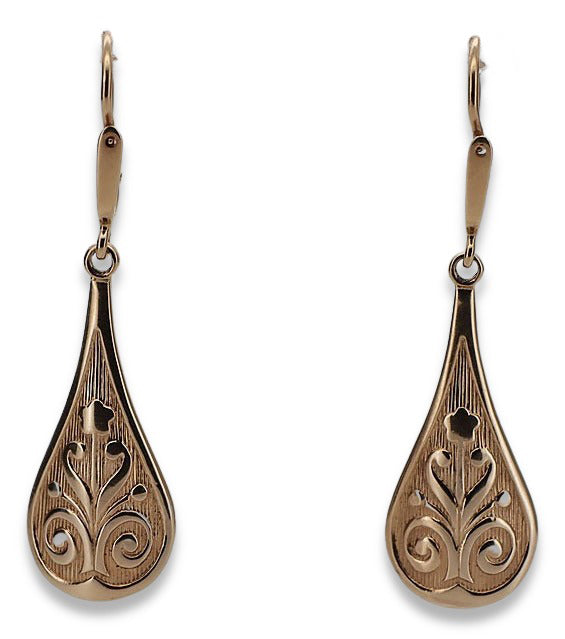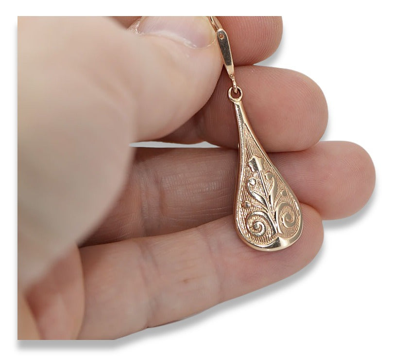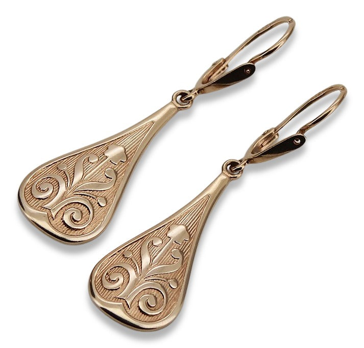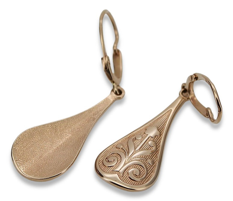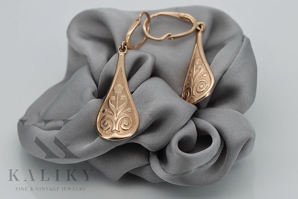 Vintage rose pink 14k 585 gold Vintage leaf earrings ven147
