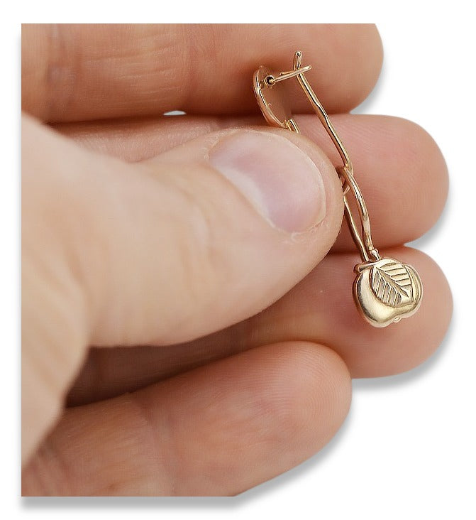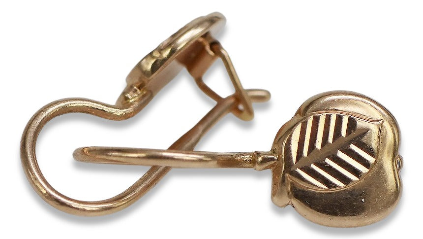 Vintage rose pink 14k 585 gold Vintage leaf earrings ven192