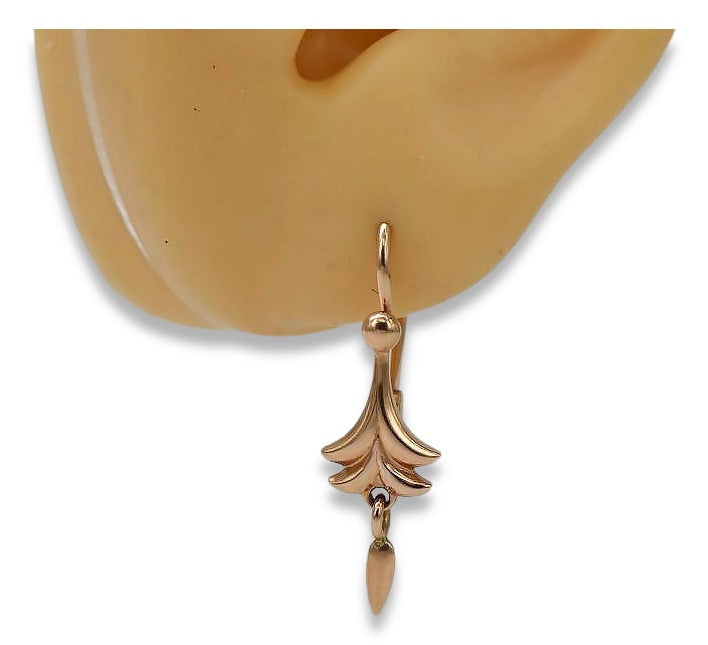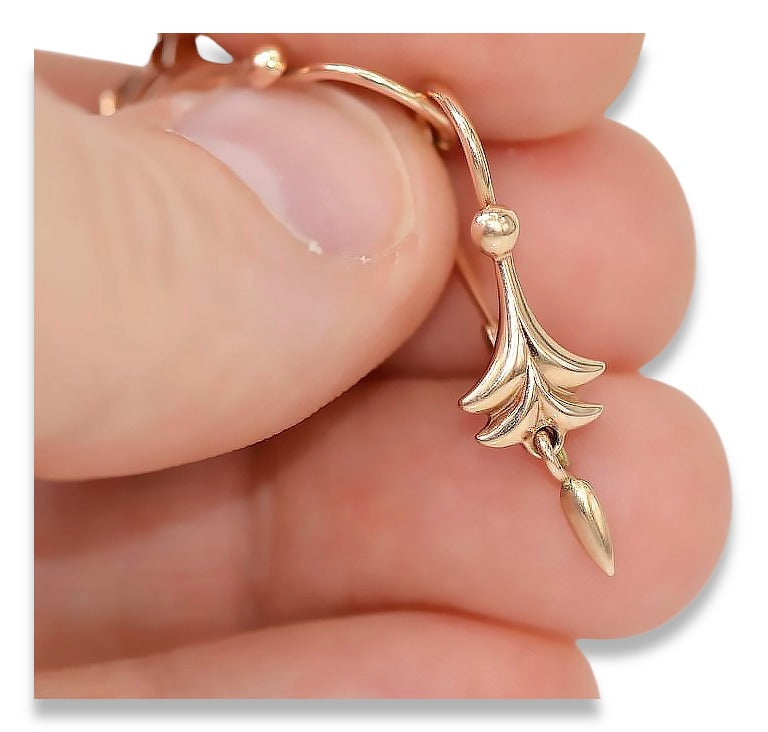 Vintage rose pink 14k 585 gold Vintage leaf earrings ven209
