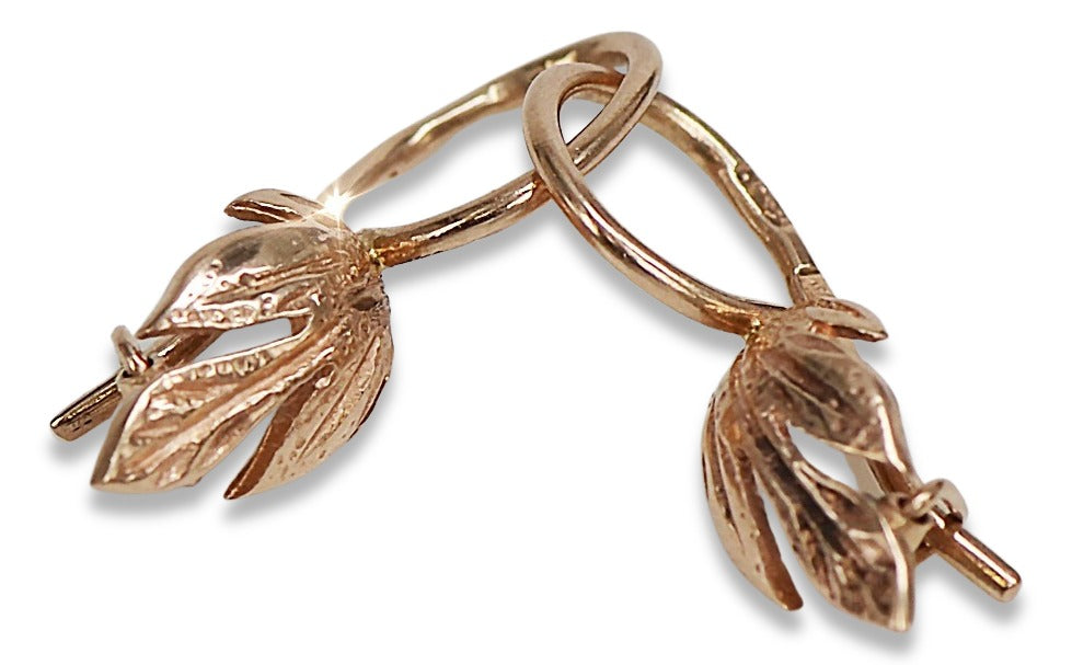 Vintage rose pink 14k 585 gold Vintage leaf earrings ven210