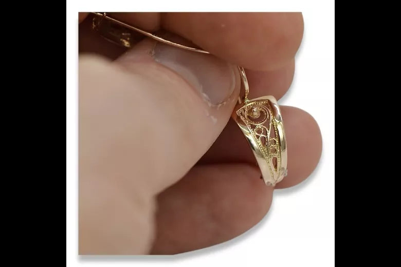 Evoke the opulence of a bygone era with these exquisite Vintage rose pink 14k gold leaf earrings. Crafted with meticulous detail, these earrings embody the enduring allure of Russian vintage jewelry, offering a glimpse into the artistry of Soviet-era craftsmanship. A testament to timeless elegance, they are perfect for adding a touch of historical charm to any ensemble. These earrings whisper tales of romance and refinement, making them a treasured addition to your collection.