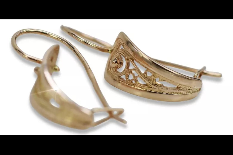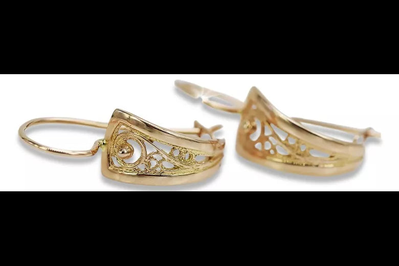 Vintage rose pink 14k 585 gold Vintage leaf earrings ven232