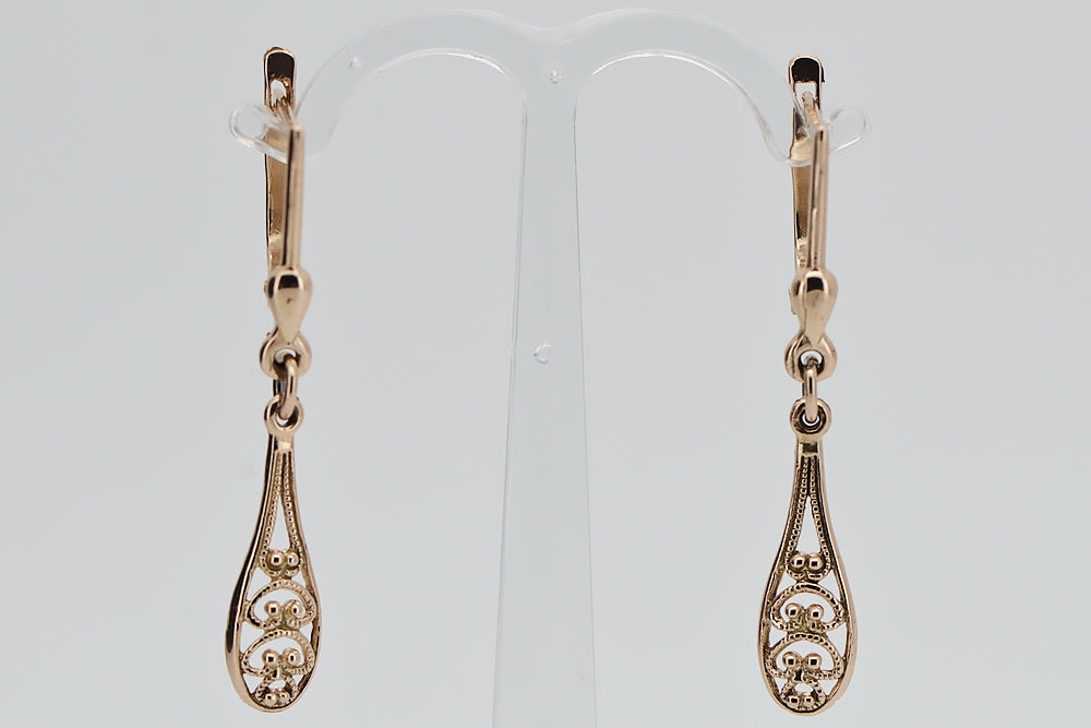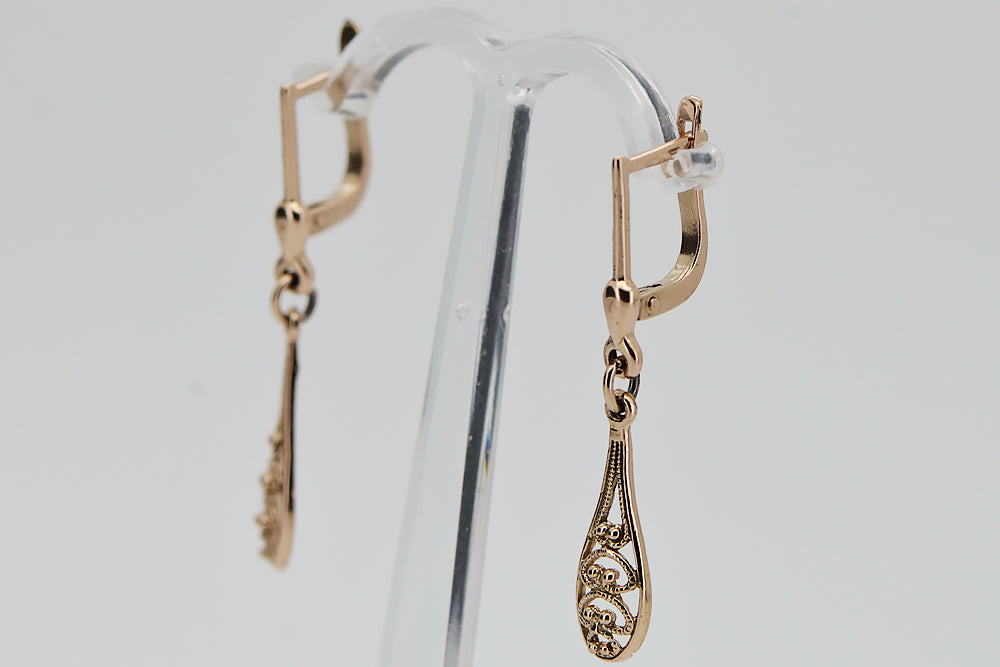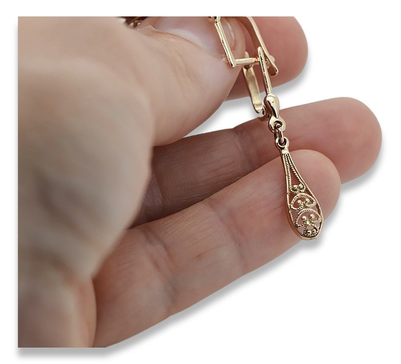 These exquisite vintage 14K rose gold leaf earrings, a testament to enduring elegance, evoke the romance and artistry of a bygone era. A captivating piece of Russian vintage jewelry, these earrings whisper tales of sophisticated style and timeless beauty. Adorn yourself with a touch of Soviet-era charm and experience the allure of luxury gold jewelry.